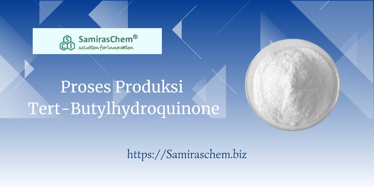 Proses produksi Tert-Butylhydroquinone melibatkan reaksi kimia antara hydroquinone dan isobutylene dalam kondisi asam kuat sebagai katalis, yang berlangsung dalam reaktor tertutup dengan pengendalian suhu dan tekanan tertentu. Setelah reaksi alkilasi selesai, campuran reaksi didinginkan, dinetralkan, lalu melalui tahap ekstraksi untuk memisahkan TBHQ dari senyawa lainnya. Selanjutnya, TBHQ di murnikan melalui kristalisasi atau distilasi untuk memperoleh tingkat kemurnian tinggi. Produk akhir kemudian di keringkan dan di kemas dalam kondisi steril guna menjaga stabilitas dan kualitasnya sesuai standar industri.